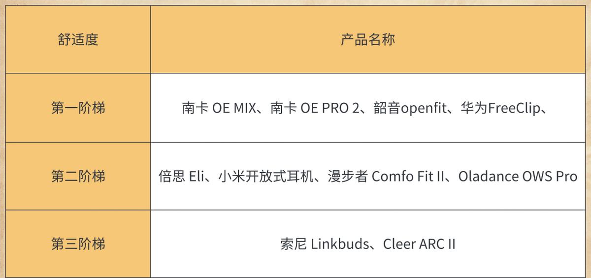 總結:這里把舒適度實際感受分成三個階梯,第一階梯的耳機我覺得是比較舒服,佩戴時間和酸脹程度都比較小的。第二階梯主要是久戴會酸脹,設計的還算可以。第三階梯我個人認為短時間也有點不是很舒服,設計我覺得一般般。