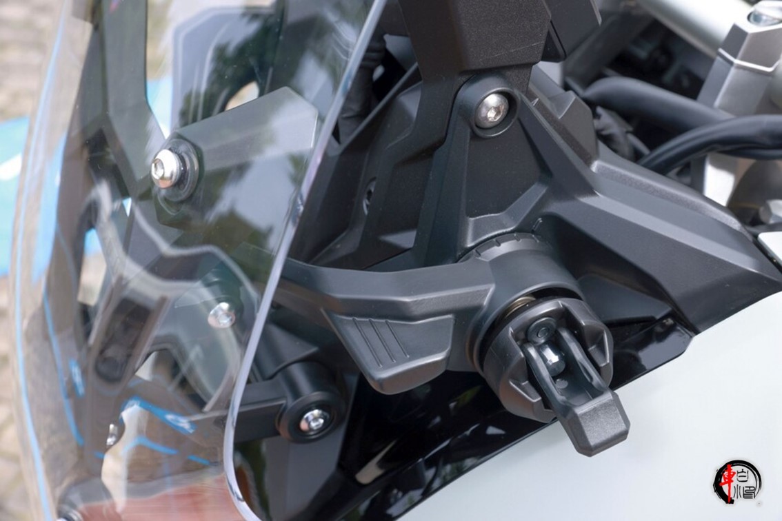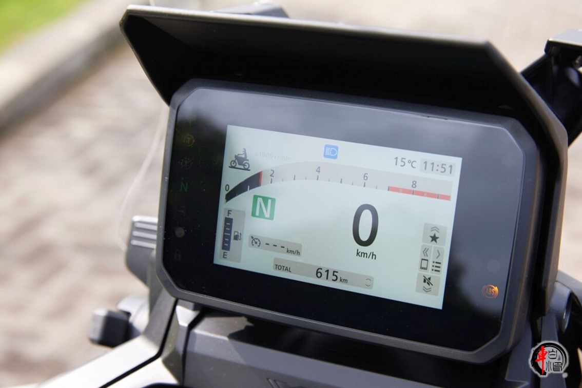 硬件方面,減震系統依然采用采用41mm預載可調倒置前叉,提供了良好支撐與減震效果,搭配輻條輪轂和越野輪胎能輕松適應多種路況。后懸架采用Pro-Link多連桿結構中置減震,過濾震動效果出色,提升了騎行穩定性。剎車系統配備前雙盤和后單盤制動,標配雙通道ABS制動系統和可關閉的HSTC牽引力控制系統,升級后控制更平穩,新增巡航控制系統,車速50km/h以上可激活,長途騎行更便利。