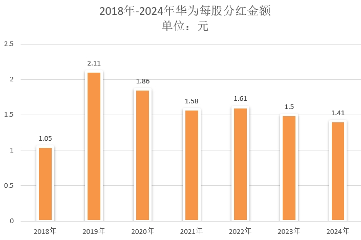 如下圖所示,這是華為每年的分紅數據,這個數據指的是每股所能分到的現金(稅前)。