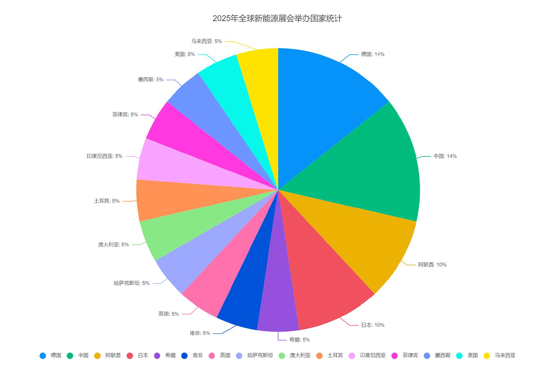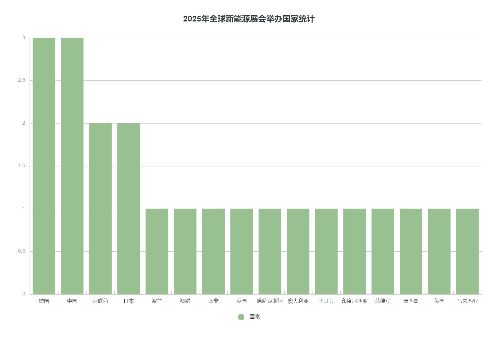 從柱狀圖可以看到中國和德國2025年將舉辦3個新能源相關展會。