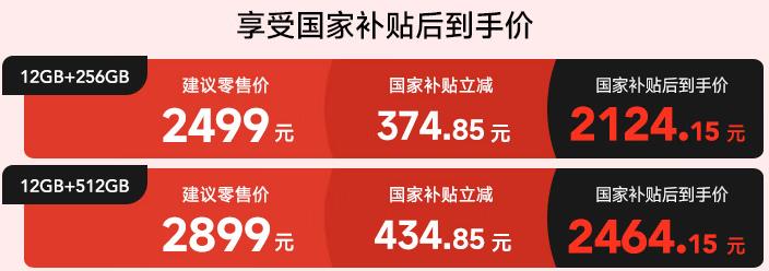12G+512G版本的售價(jià)為2899元,國(guó)補(bǔ)立減434.85元,最終到手價(jià)格為2464.15元。