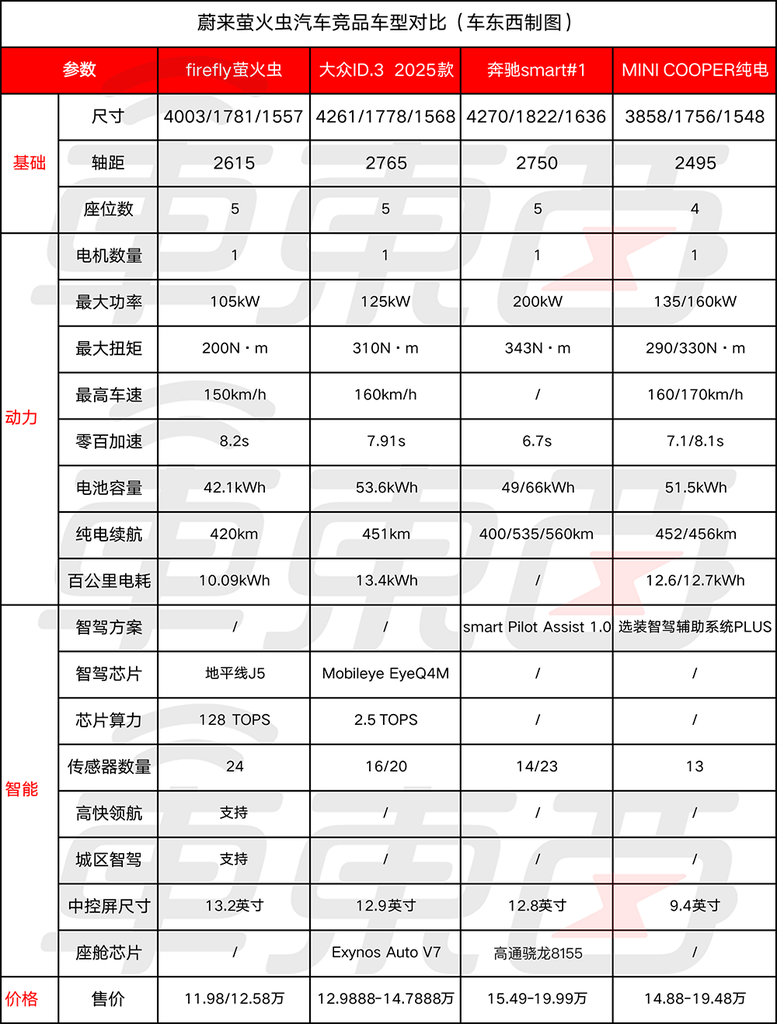 ▲螢火蟲和MINI、Smart等競品對比