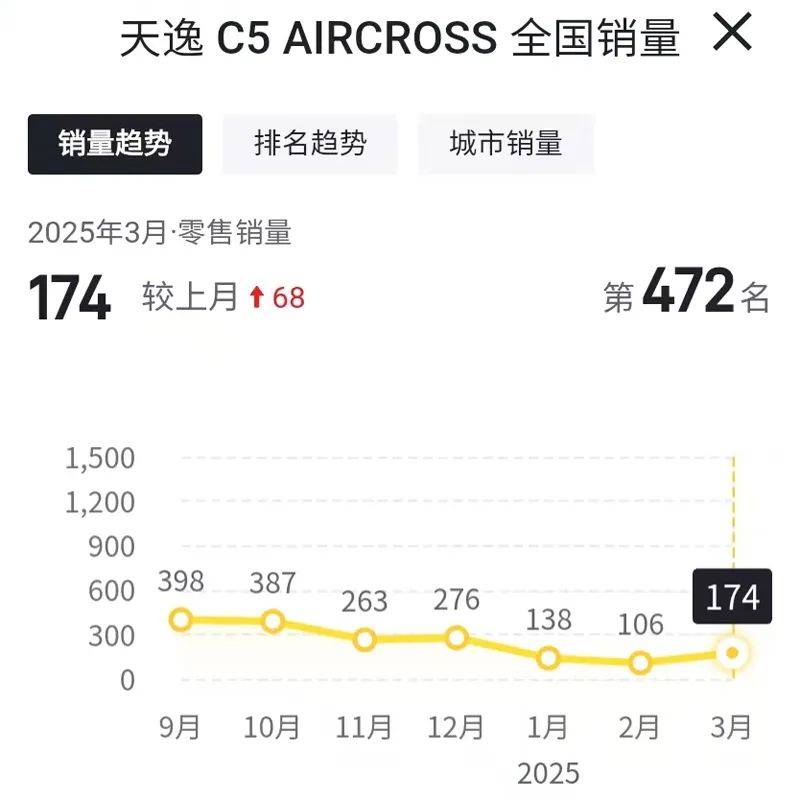 進入2025年,神龍汽車似乎并沒有擺脫銷量下滑趨勢,尤其是雪鐵龍品牌的銷量下滑,仍然在繼續。根據數據顯示,2025年3月份,東風雪鐵龍的銷量僅為1395輛,相比2025年2月份的銷量為1995輛,環比下滑30.07%。