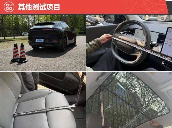 此外,我們還針對駐車雷達、燈光/視野、操控系統、輪胎、天窗、座椅、后備廂進行了測試。經過測試發現,評測車的前排座椅座墊較短,且后駐車雷達最近端持續蜂鳴階段對后方障礙物距離的把控過遠,導致失分。此外,評測車配備了米其林PS EV型號輪胎,具備節能環保、靜音、耐磨和舒適等特點。