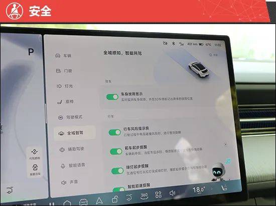 評測車搭載L2級輔助駕駛系統,向下撥動兩次電子懷擋撥桿即可開啟。全速自適應巡航跟車過程中響應速度適中,未出現急加速或急減速情況。此外,跟車距離支持五檔調節,當調整到最近檔位時與前車間距適中,不容易被其他社會車輛加塞。