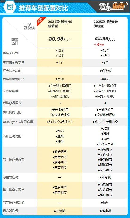 因此,綜上所述,尊榮型在2025款騰勢N9全系車型中擁有著最高的性價比,建議消費(fèi)者在購車時優(yōu)先考慮。