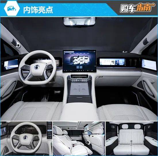 內(nèi)飾方面,2025款騰勢N9延續(xù)了家族式的設(shè)計風(fēng)格,觸手可及之處幾乎均采用皮質(zhì)包覆。儀表臺配備有13.2英寸全液晶儀表盤、17.3英寸中控屏和13.2英寸副駕娛樂屏。座椅方面,新車采用2+2+2的座椅布局。第二排座椅可實(shí)現(xiàn)14向電動調(diào)節(jié),擁有左右橫移聯(lián)動調(diào)節(jié)功能,并提供智能冷暖冰箱。第三排座椅可實(shí)現(xiàn)6向電動調(diào)節(jié),配有寬大的扶手和可升降的座墊,頗具新意。