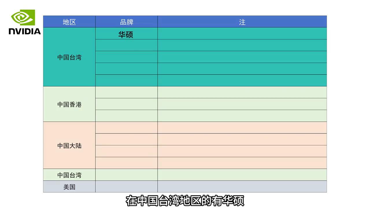 ·首先來看一下n卡,它的芯片在中國主要供給12家公司。這12家公司在中國臺灣地區的有華碩、微星、技嘉、影馳、耕升,在香港的有索泰、映眾、萬麗,在中國大陸的有七彩虹、翔升、盈通、銘瑄。