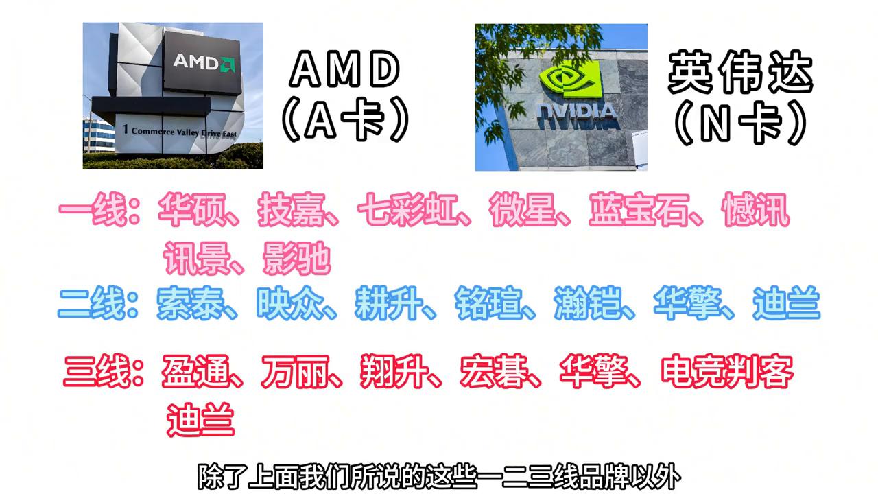 首先全世界生產主流顯卡芯片的公司就兩家:AMD(A卡)和英偉達(N卡),也就是常說的a卡和n卡。平常看到的華碩、微星、七彩虹、藍寶石等等這些顯卡品牌都是批發這兩家公司的芯片去生產的顯卡,這兩家公司生產的顯卡芯片就有權利選擇自己的芯片供應給誰,跟誰合作。