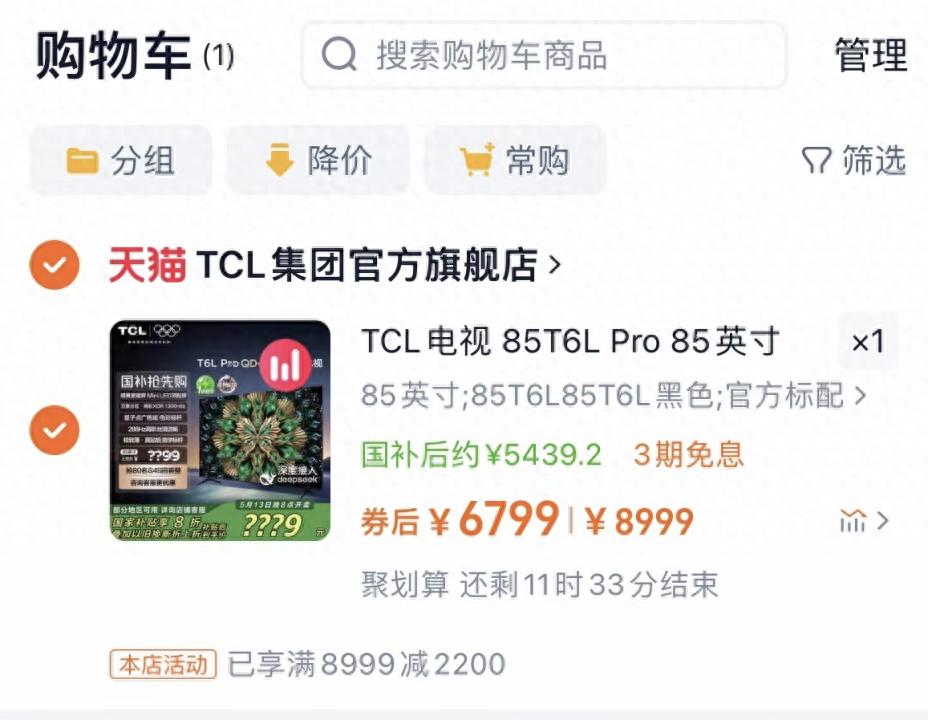5月初新家剛裝完,眼瞅著趕上了618購物節,就想著順手把家里那臺老破小電視也換掉。本來對比了不少品牌和產品,最終還是把TCL T6L Pro放進了購物車。其實也糾結過海信小墨E5Q,這兩款Mini LED電視在畫質、配置、性能上都挺有競爭力的,各有看頭。