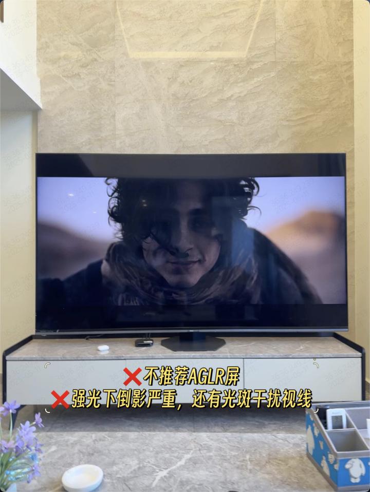 說白了,這其實就是屏幕素質不到位,抗反光能力差。簡單跟大家科普下,現在市面上常見的電視屏大致可以分為磨砂屏和鏡面屏。磨砂屏的好處是抗反光能力強,但畫面看起來會有點糊;鏡面屏通透感好,可一旦環境光復雜,就容易反光刺眼。還有一些廠商會用AGLR屏,也就是把磨砂(AG)和低反(LR)結合起來,理論上是為了兼顧抗反和清晰度,但實際體驗下來就比較雞肋,兩邊都不討好。