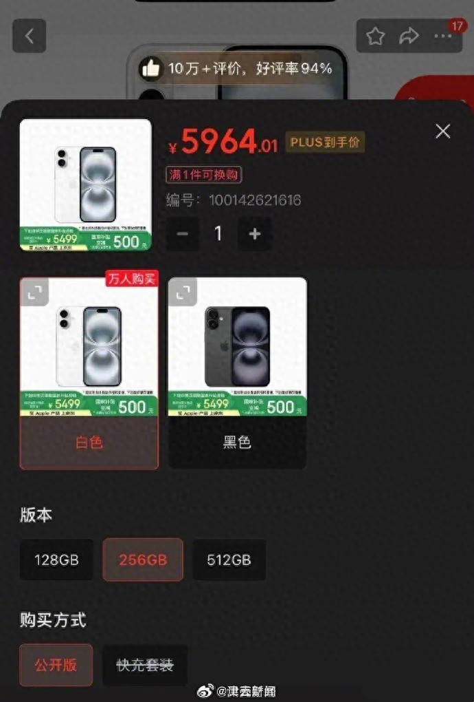 今年1月20日,手機(jī)國(guó)補(bǔ)正式上線。目前蘋果手機(jī)部分主力機(jī)型大部分都能享受國(guó)家補(bǔ)貼,包括iPhone15、iPhone16等。有消費(fèi)者通過國(guó)補(bǔ)下單了一臺(tái)內(nèi)存256G的iPhone16,價(jià)格為5499元。對(duì)比美國(guó)市場(chǎng),國(guó)補(bǔ)后的iPhone16是全球最低價(jià),成蘋果最“香”機(jī)型。