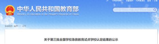 根據(jù)《教育部辦公廳關于開展第三批全國學校急救教育試點工作的通知》(教體藝廳函〔2024〕46號),經學校自主申報、省級教育行政部門遴選推薦、專家復核,教育部擬認定2926所學校為第三批全國學校急救教育試點學校,現(xiàn)予以公示,公示期為2025年5月12日至5月16日。