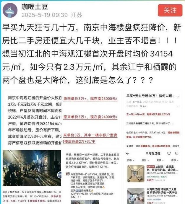 今年五月央行剛說要穩住房價,中海轉頭就大降價。其實南京樓市早就扛不住了,二手房掛牌量翻著跟頭漲,新房根本賣不動。其他開發商還在硬撐,中海這次直接撕破臉皮,把遮羞布扯了個干凈。