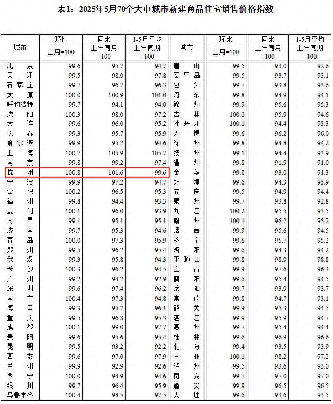 國家統計局房價數據顯示,今年5月杭州新房價格環比和同比雙雙實現上漲,其中環比漲幅0.8%位居全國第一,一躍超過前幾個月高居榜首的上海。