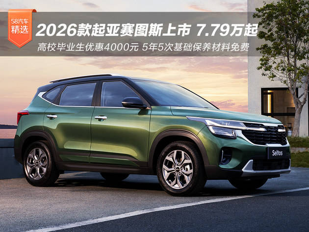 7月2日,2026款起亞賽圖斯魅力上市,新增1.5L豪華舒享版車型,共推出8種配置車型。7月1日-7月31日期間,消費者購買1.5L豪華版車型可享“夏日悠享價”7.79萬元。同時,購車用戶還可享金融貼息至高5000元、定向人群贈送2000元油卡及高校畢業生優惠4000元、5年5次基礎保養材料免費等多項超值權益。