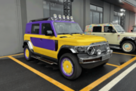 iCAR V23算是小火一把,所以我們看到,新車整體的外觀基本延續其設計手法,相對硬朗且復古,兩側是圓形燈組,中網裝飾條上有iCAR車標,下方則為非常粗壯有力的黑色前保險杠,該有的越野視覺效果還是到位的。