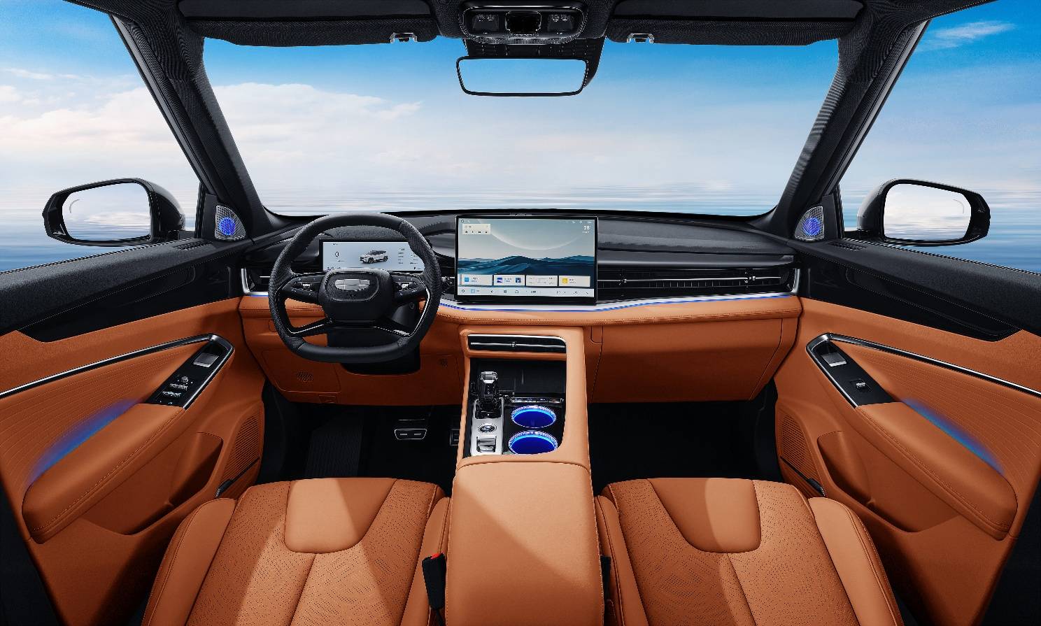 車內,拱橋形態的扶手臺,保留了實體按鍵,操作更方便;256 色氛圍燈系統,融入古琴減字譜算法,聽音樂的時候,燈光跟著節奏變換,氛圍感直接拉滿。還有遮陽板的漸變透光率設計,過濾強光的同時,還能看清交通信號,這個小細節真的很貼心。