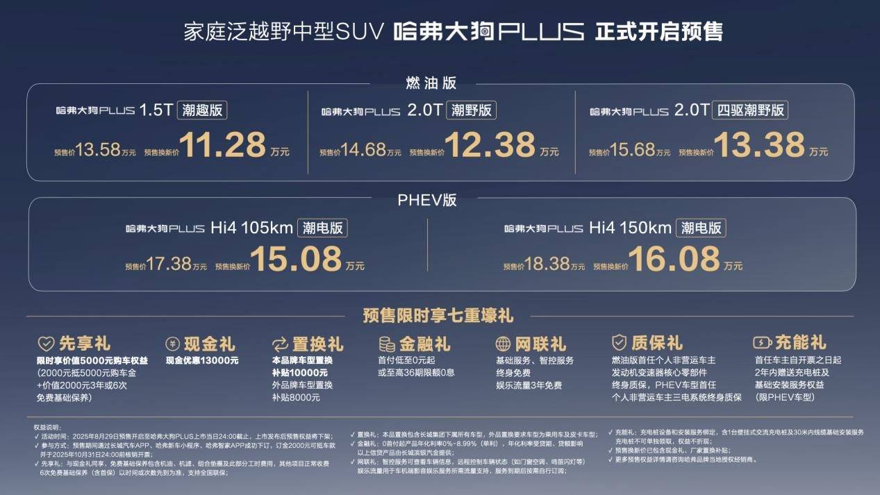 在8月29日開幕的成都國際車展上,哈弗大狗PLUS正式開啟預(yù)售,目前共推出5款配置車型,預(yù)售價(jià)格區(qū)間為11.28-16.08萬元。同時(shí),哈弗旗下哈弗猛龍2026款、二代哈弗梟龍MAX等車型也一同亮相。
