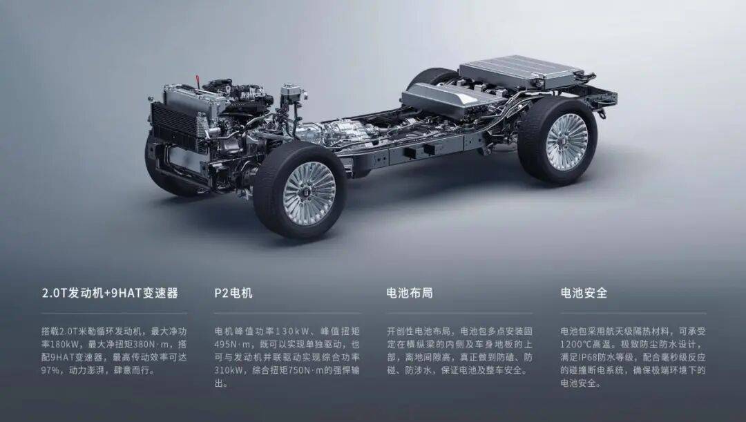 具體來說Hi4-T版本采用2.0T發動機+單電機,保留機械式傳動軸,并匹配9HAT變速箱,電池容量相對更小,WLTC純電續航110km,更側重保留傳統越野傳動結構的高可靠性,越野通過能力更強,并兼顧一定的純電行駛里程。