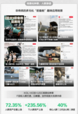 二是信任穿透力—— 真實分享生態(tài)將汽車轉(zhuǎn)化為 “可感知的生活體驗”,無論是場景化種草還是情感共鳴,都以用戶視角建立信任,比單向宣傳更易滲透心智;